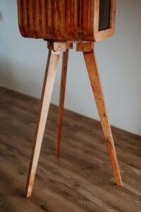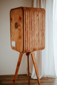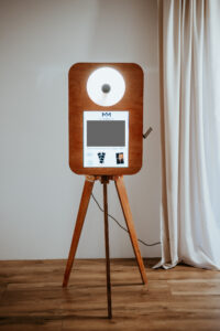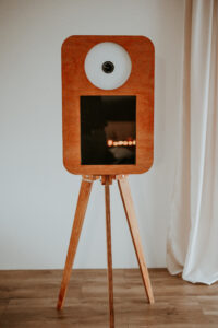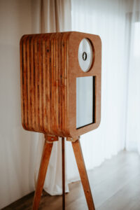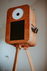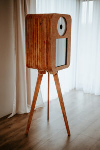 Wyjątkowy wygląd: FOTOBUDKA RETRO– drewniana konstrukcja, stylowe detale i elegancki design.